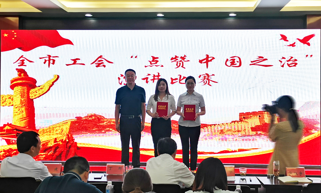全市共13个镇(区、街道),26家企业职工代表参赛,市总工会主席周太荣、市级机关工委副书记丁群,市社科联副主席吴华,市第二纪检监察组组长陈建,市总工会班子成员担任评委。经过激烈角逐,最终我司职工代表荣获“点赞中国之治”主题演讲比赛二等奖。
