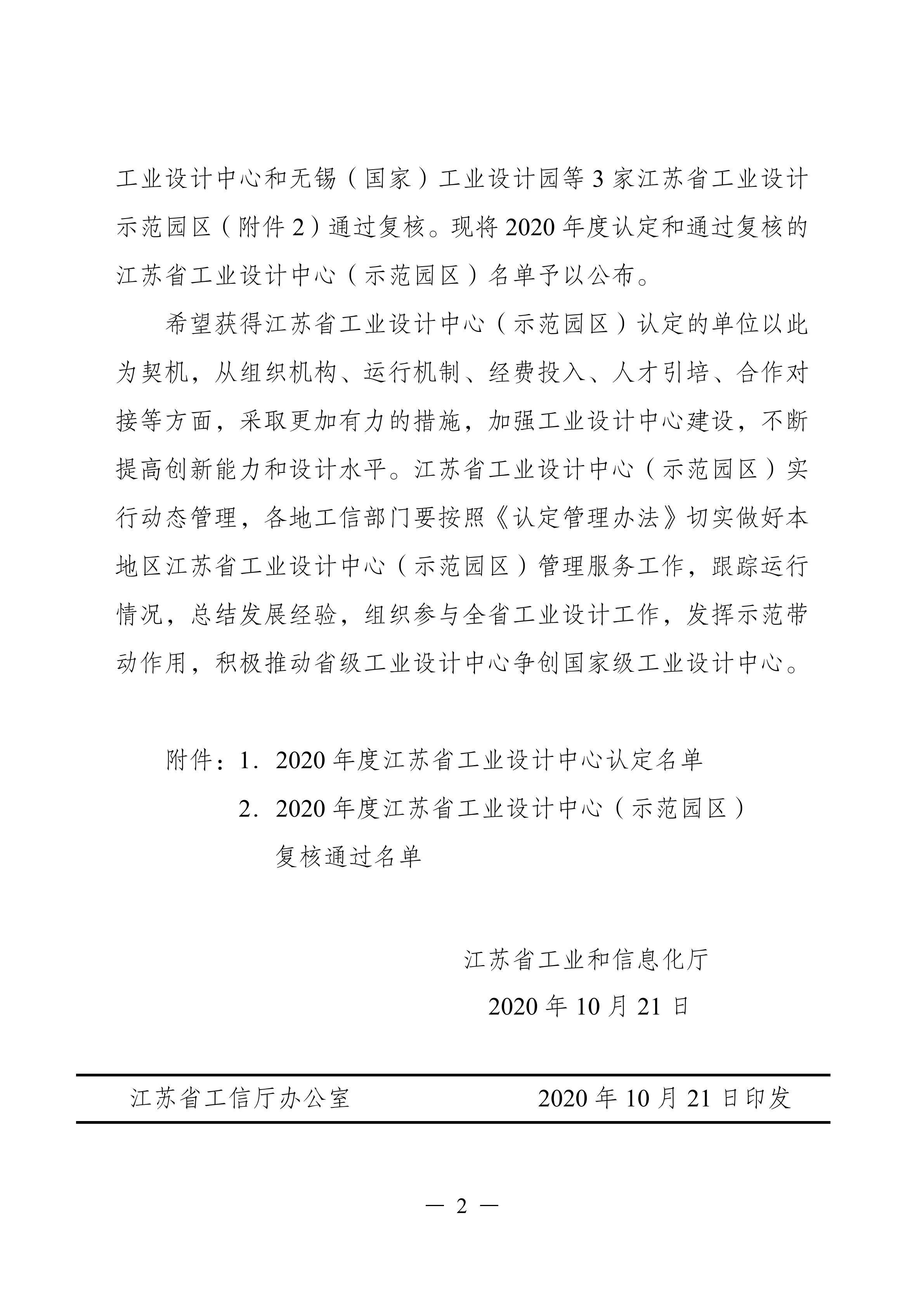 近日,江苏省工业和信息化厅发布《关于公布2020年度江苏省工业设计中心(示范园区)认定及复核结果的通知》(苏工信服务〔2020〕533号)文件,betway88西汉姆联工业设计中心获得2020年度省级工业设计中心。