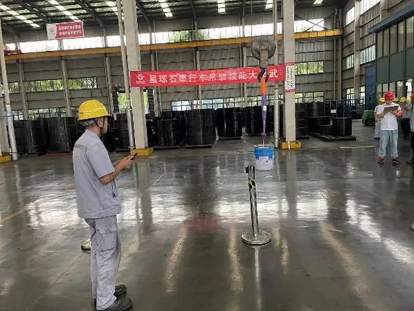 本次技能比武共计28名员工参赛,由理论知识和实操考核两部分组成,理论知识占总成绩的40%,实操考核占总成绩的60%。理论考核由赛前下发的比赛题库中出卷;随后的实操考核主要考核员工操作行车的稳定性和规范性,员工吊运水桶绕过四根铁杆,比赛结果以用时长短、碰杆次数、吊装洒水次数来综合评定成绩。