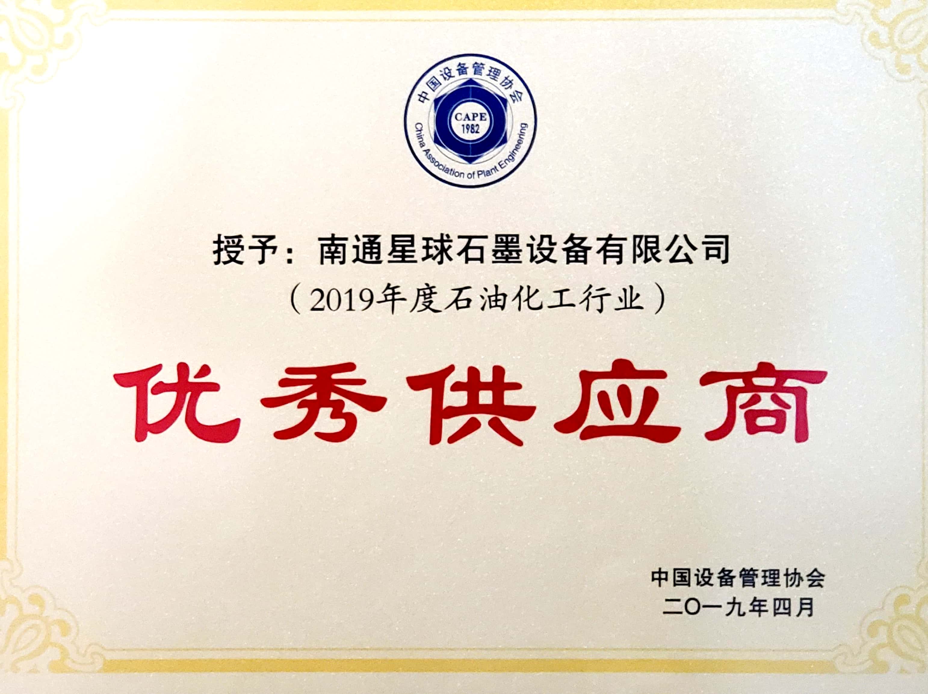 4月26日,在福建泉州举行2019年全国石油化工行业设备管理与技术创新成果交流大会上,南通betway88西汉姆联设备有限公司被评为“2019年度石油化工行业优秀供应商”。