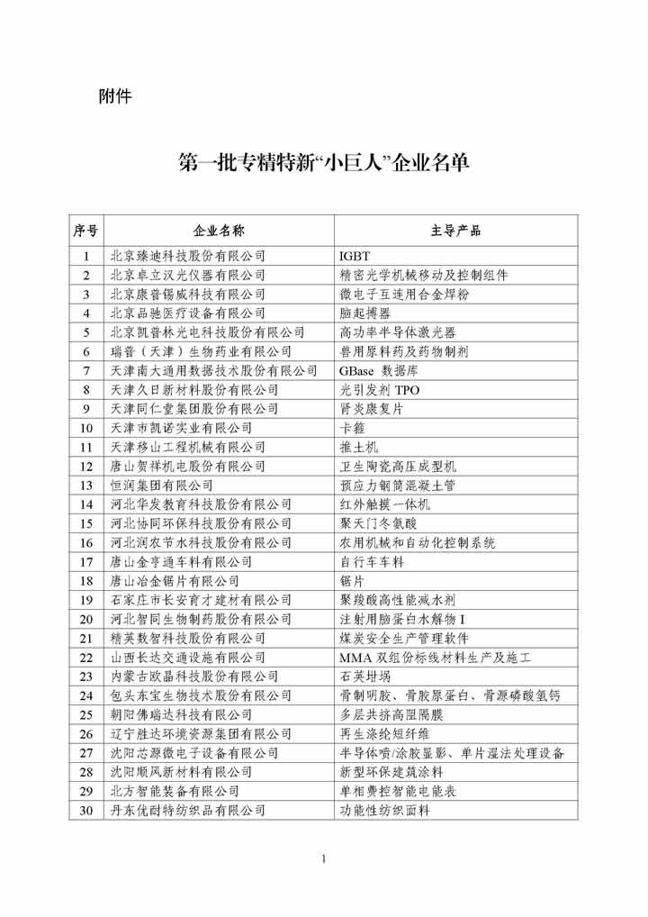 第一批专精特“小巨人”企业